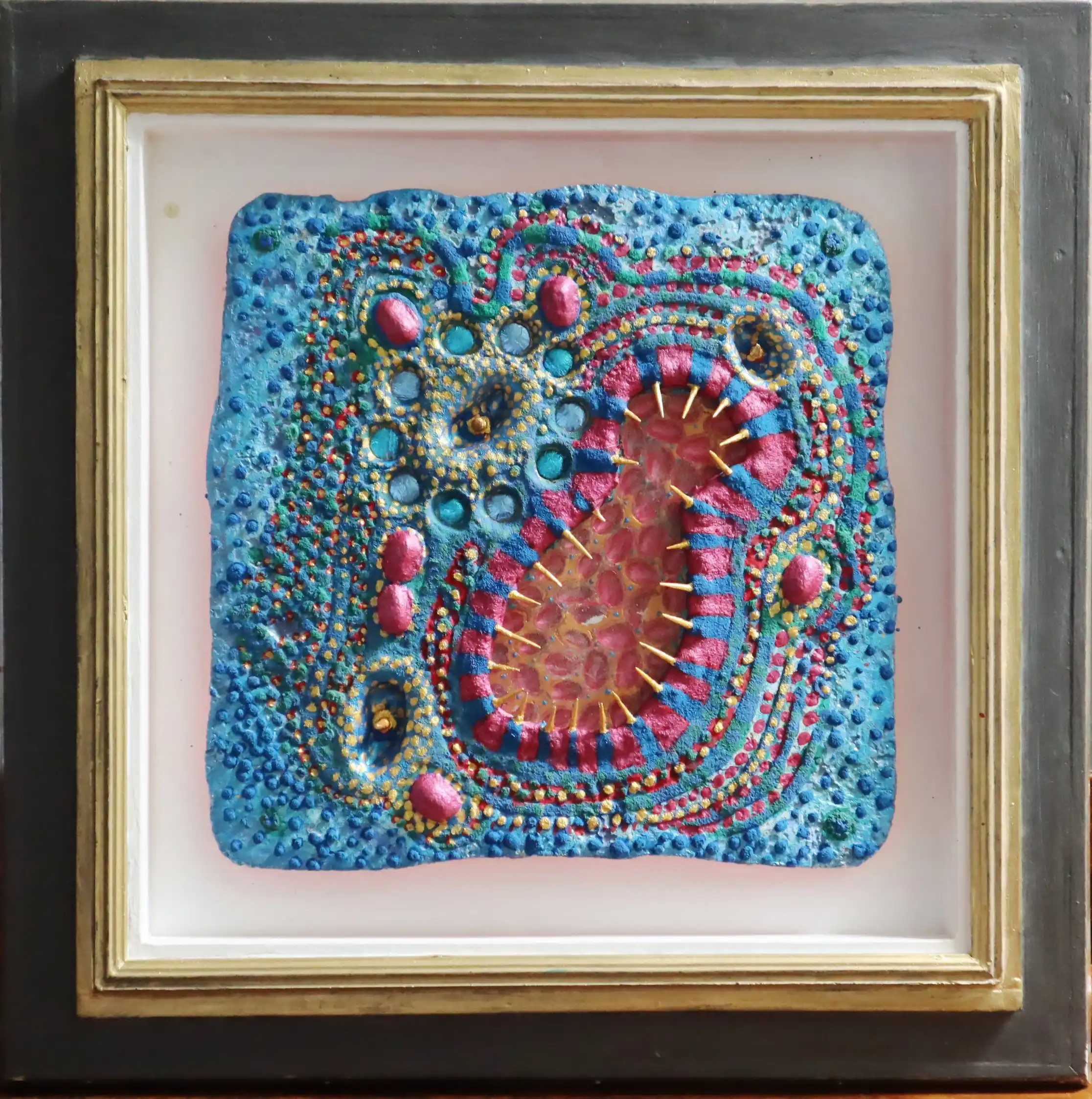 R*erfundene Archäologien Jochen Schimmelpenninck wurde bekannt mit seinen Darstellungen von dystopisch wirkenden Landschaften, Endzeitbilder mit Orten, an denen in ferner Zukunft archäologische Funde unbekannter Herkunft möglich sind. Die Ausstellung zeigt eben „Fundstücke“ dieser erfundenen Archäologie, Objekte einer „anderen Welt“, Assemblagen. Erzeugt wird eine neugierig irritierende Stimmung mit der realen Darstellung unwirklicher Objekte. Präsentiert werden die „Fundstücke“ in restaurierten alten offenen Rahmen, oder auf Sockel gestellt. Einige der Objekte könnten auch aus einer Unterwasserwelt stammen, 3D-Objekte amorpher Form voller farbiger Applikationen, wie aus einem Korallenriff entnommen.